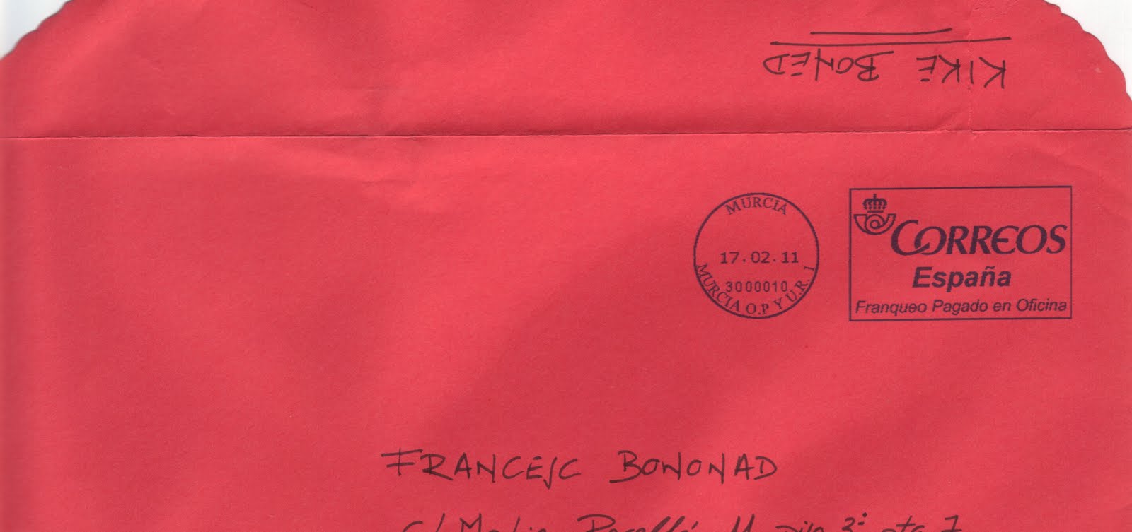 Sí, som amics. És més, té tan gran interés en la meua persona que em fa arribar cartes amb fotos dedicades tot i que jo en cap moment li he donat la meua adreça! Quina alegria m’he endut esta vesprada quan he vist la carta a la bústia. Sobre manuscrit, “cunyo” de Murcia. Molt gran.